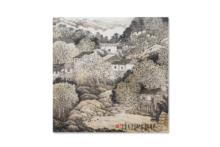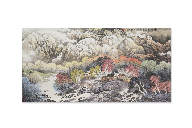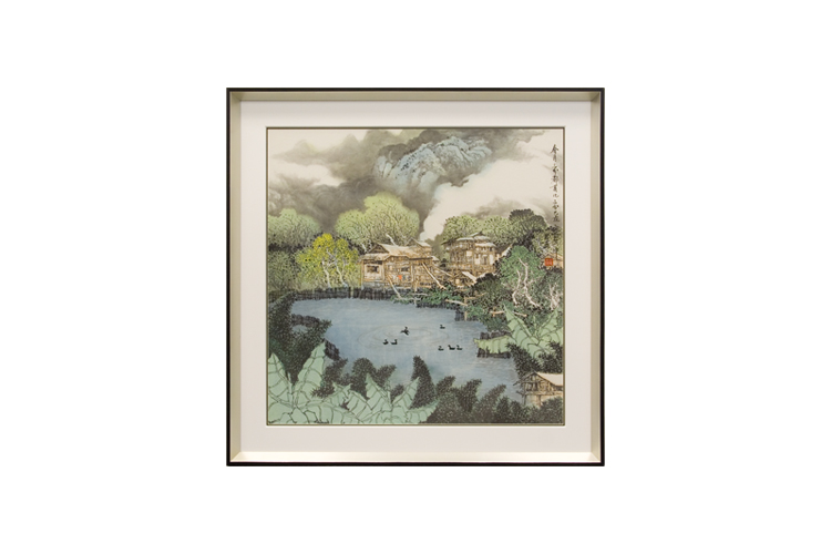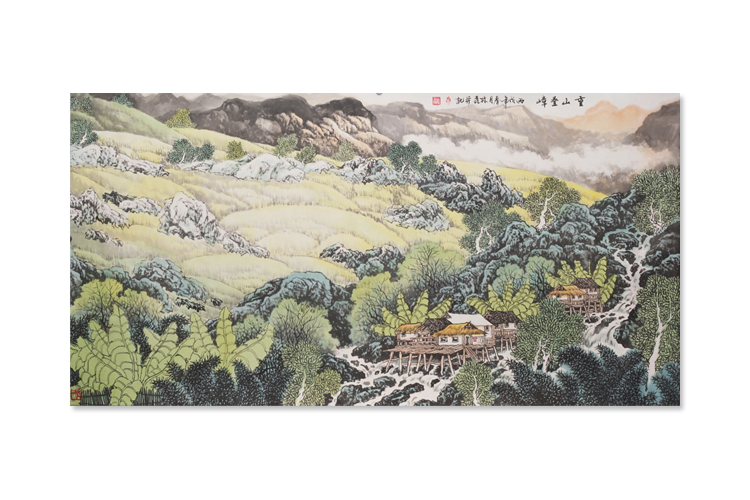 Unlike the sparse style of traditional Ink and Brush paintings, Liao’s works are rich in content. He achieves high levels of detail by using dots and lines in the foreground, portraying the vitality of minority villages. In the background is moving clouds and tumbling waterfalls among layers of mountains. His works have been exhibited in Hong Kong, Macau, Taiwan, Japan, Korea and the USA. In 1993, he was funded by the Taiwan education authority to publish the “Road Show of Chinese Paintings by Liao Lin Sen”.